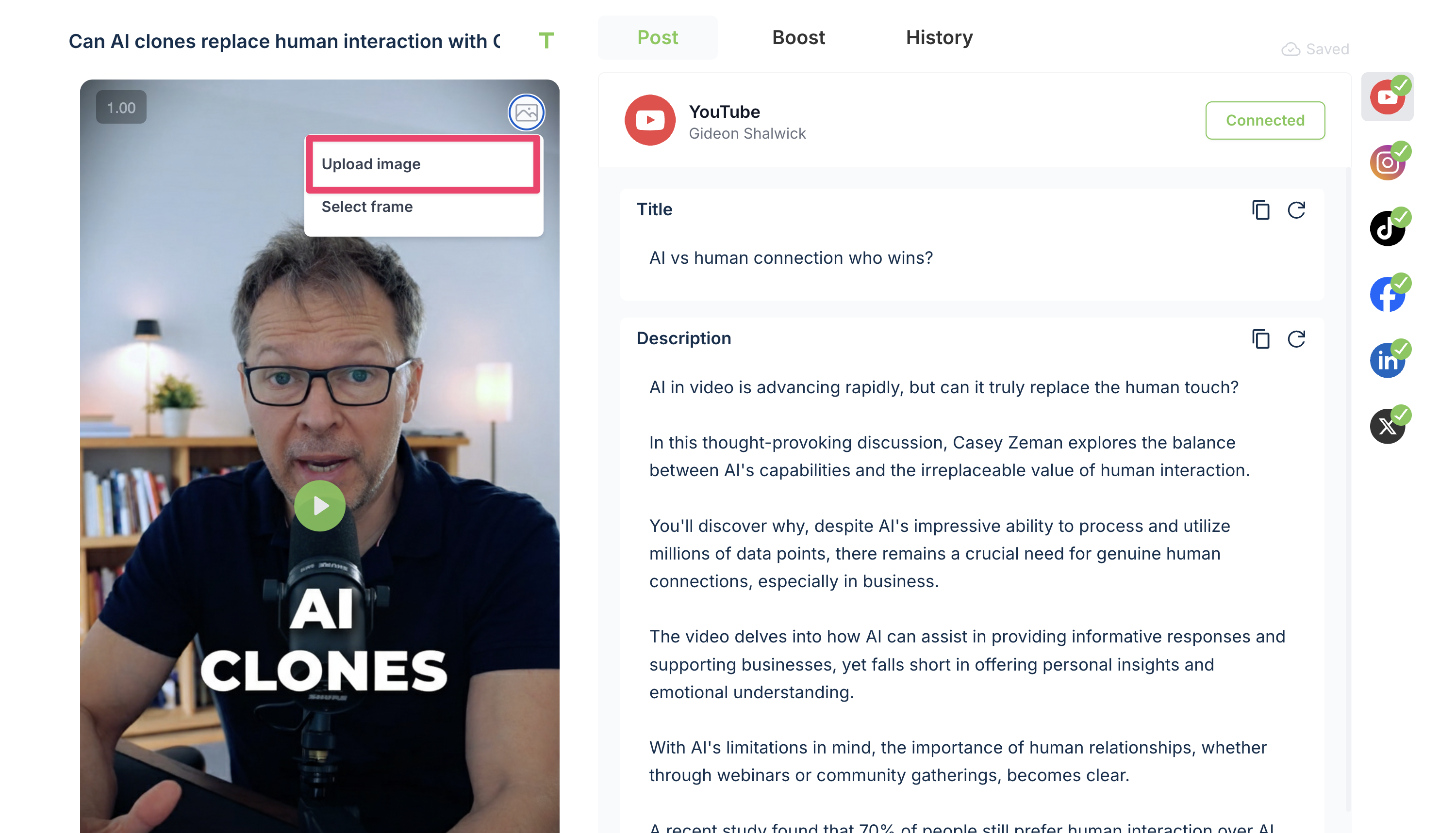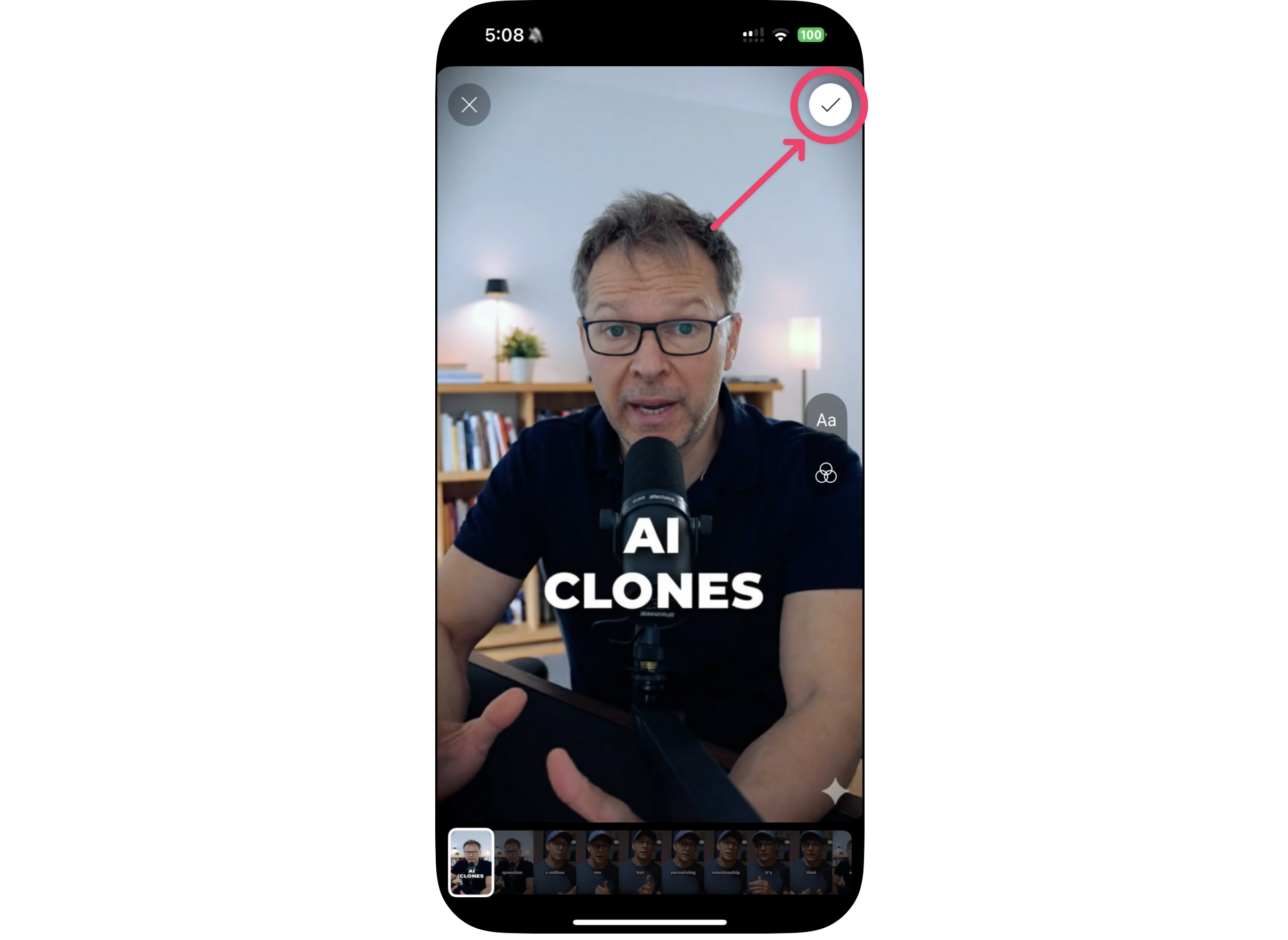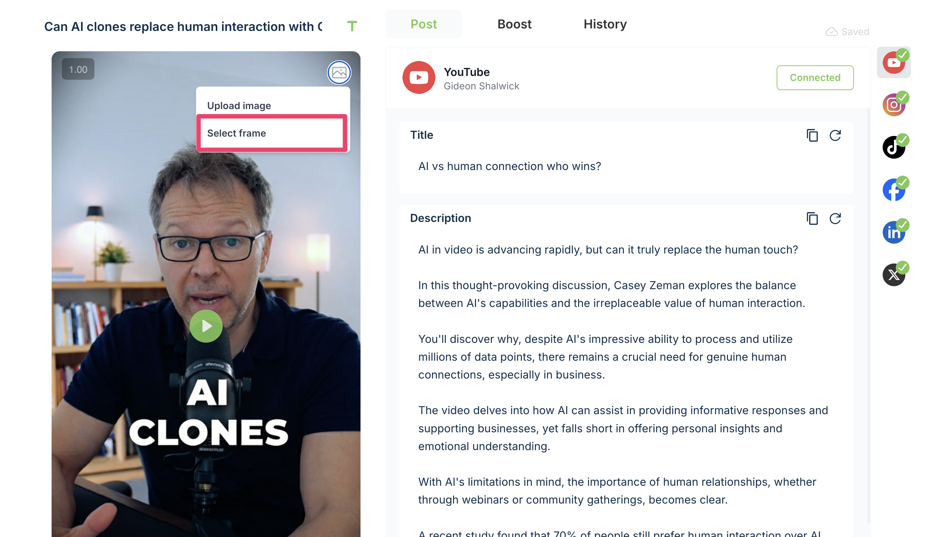 - Ensure the first frame is selected (it should be your uploaded thumbnail).