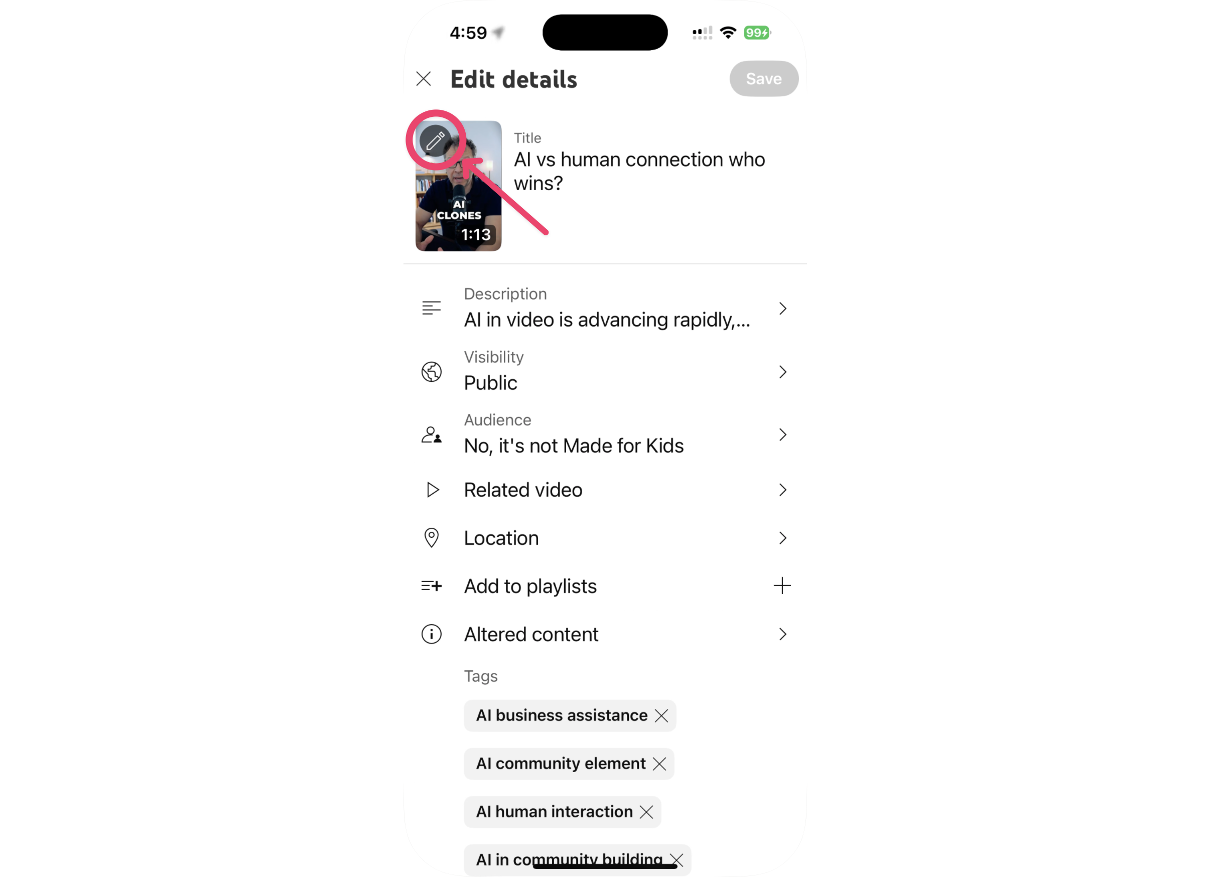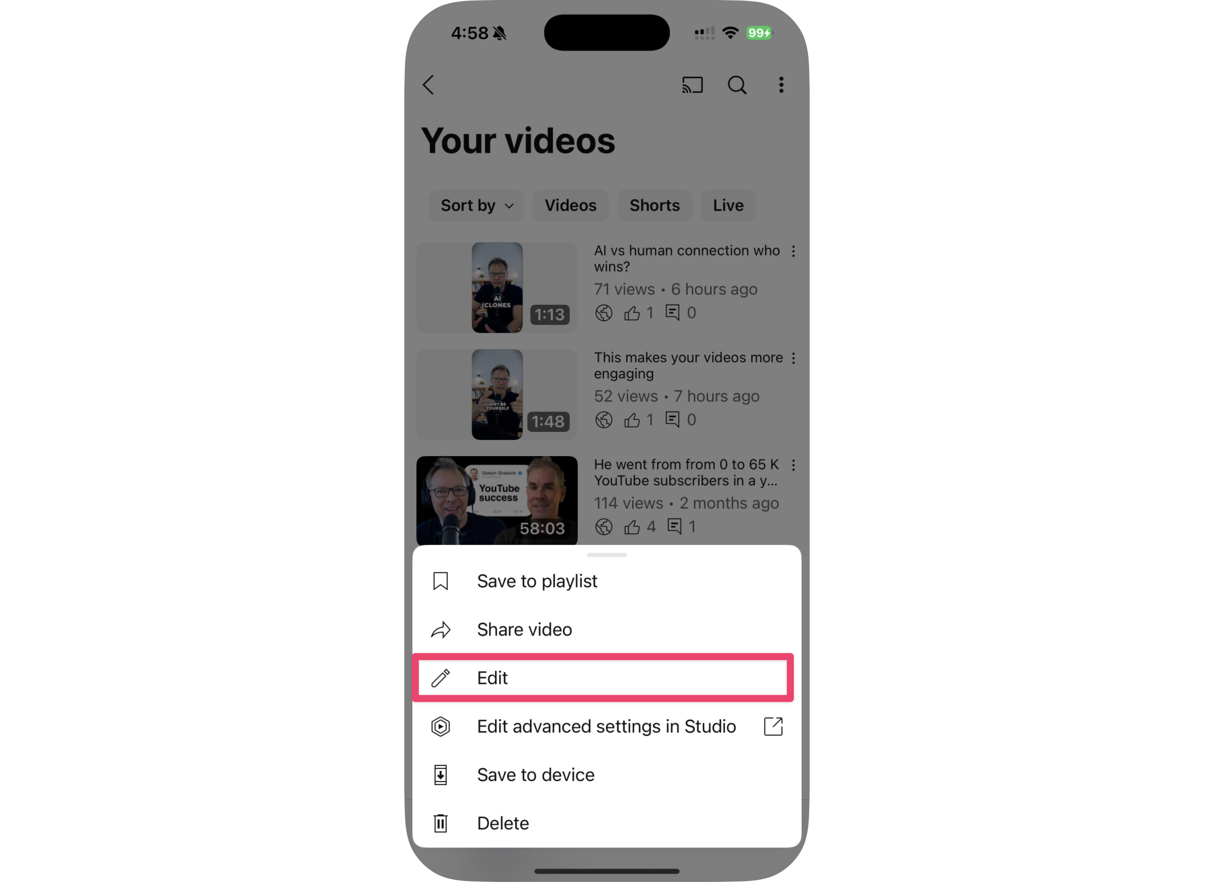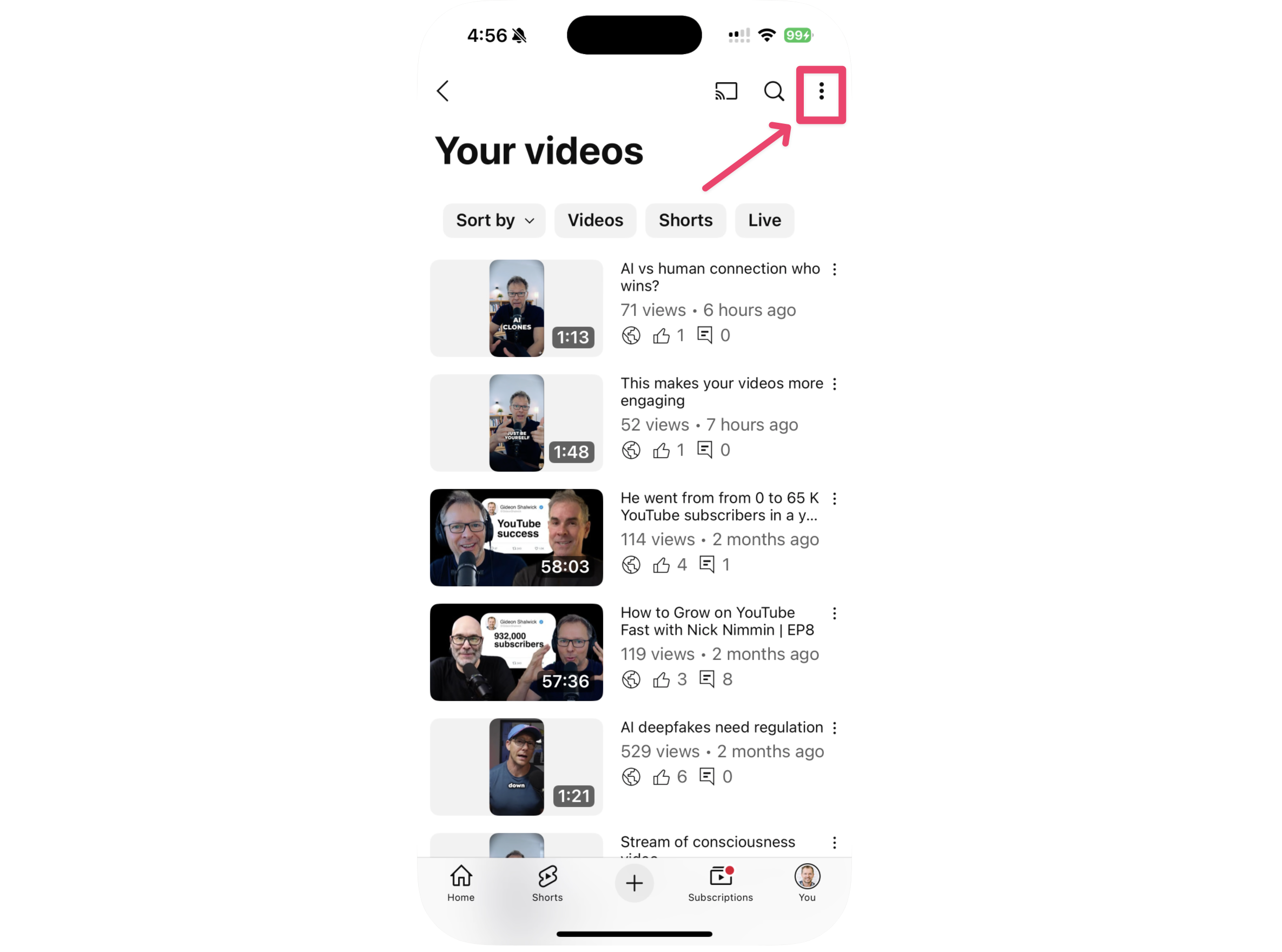 - Check your video in the Shorts tab or sort by all videos to confirm the thumbnail is set.